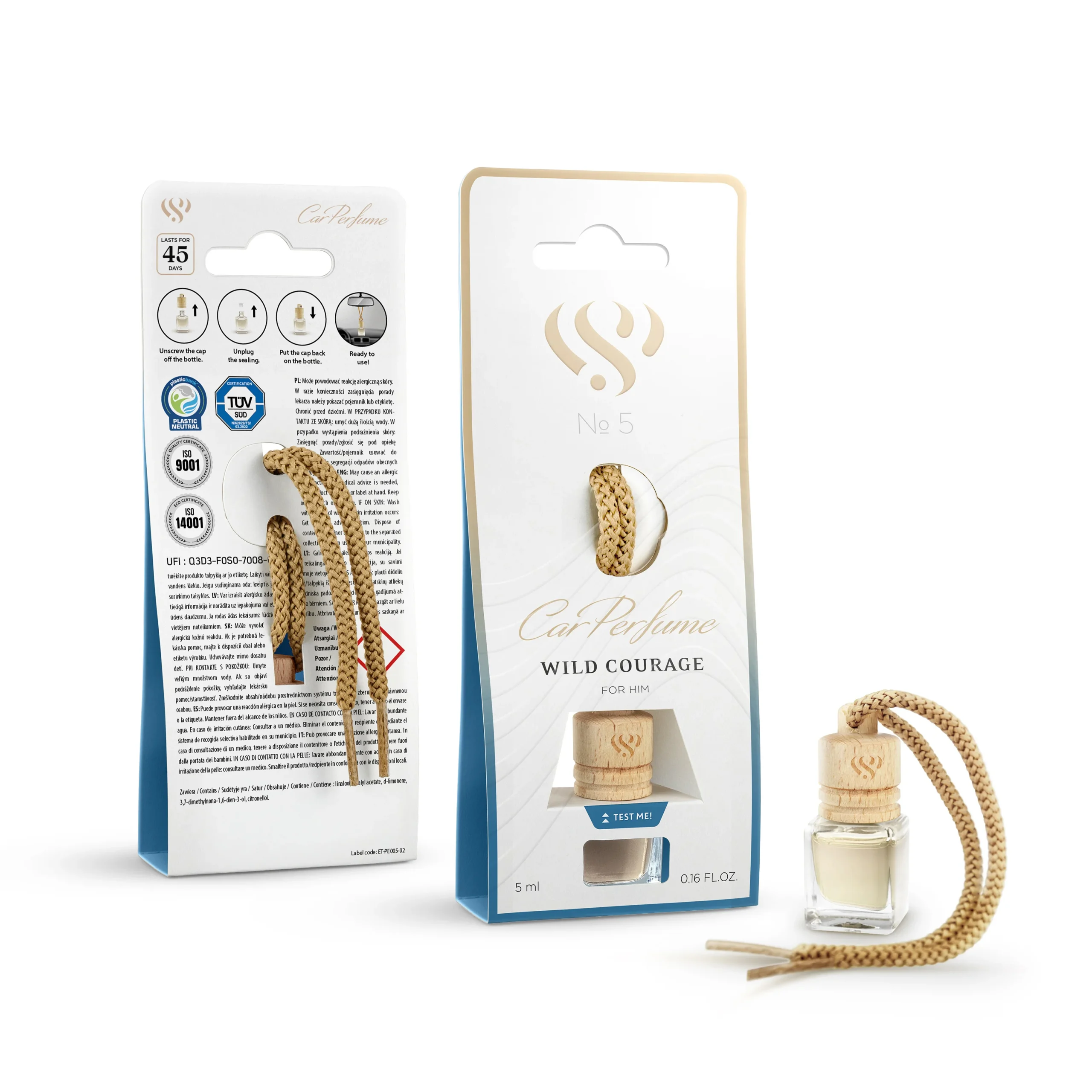 Elaborado a partir de madera de origen sostenible, Wild Courage no sólo ofrece un diseño elegante, sino que también garantiza una fragancia duradera que transforma el interior de tu vehículo en un reino de refinada masculinidad. Abraza el espíritu aventurero y deja que Wild Courage te acompañe en cada viaje.