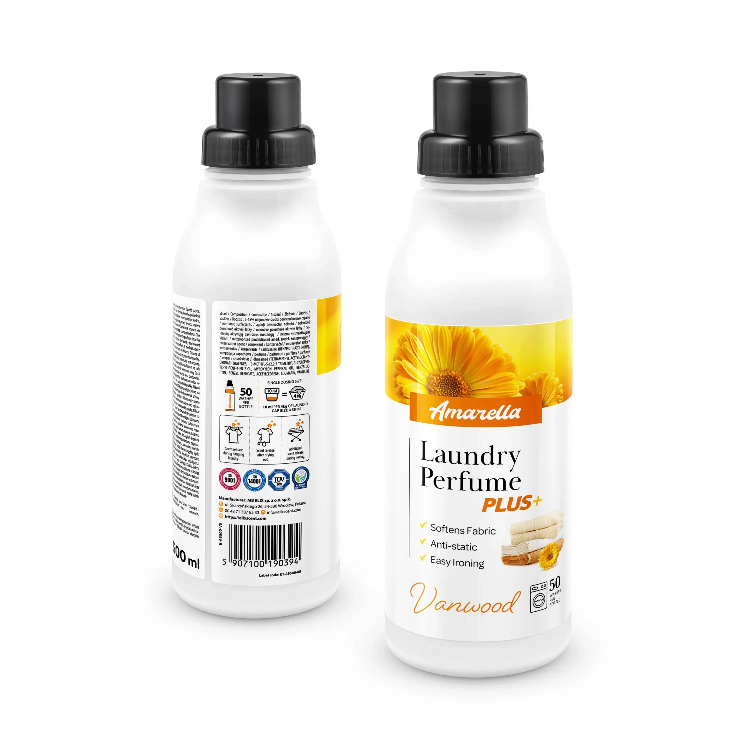 Amarella Laundry Perfume PLUS Vanwood is built for everyday reality. It perfumes fabrics with a confident, long-lasting scent while supporting the finishing touches you actually notice: softer feel, reduced static cling, e easier ironing, so clothes sit better, feel smoother, and take less effort to complete.