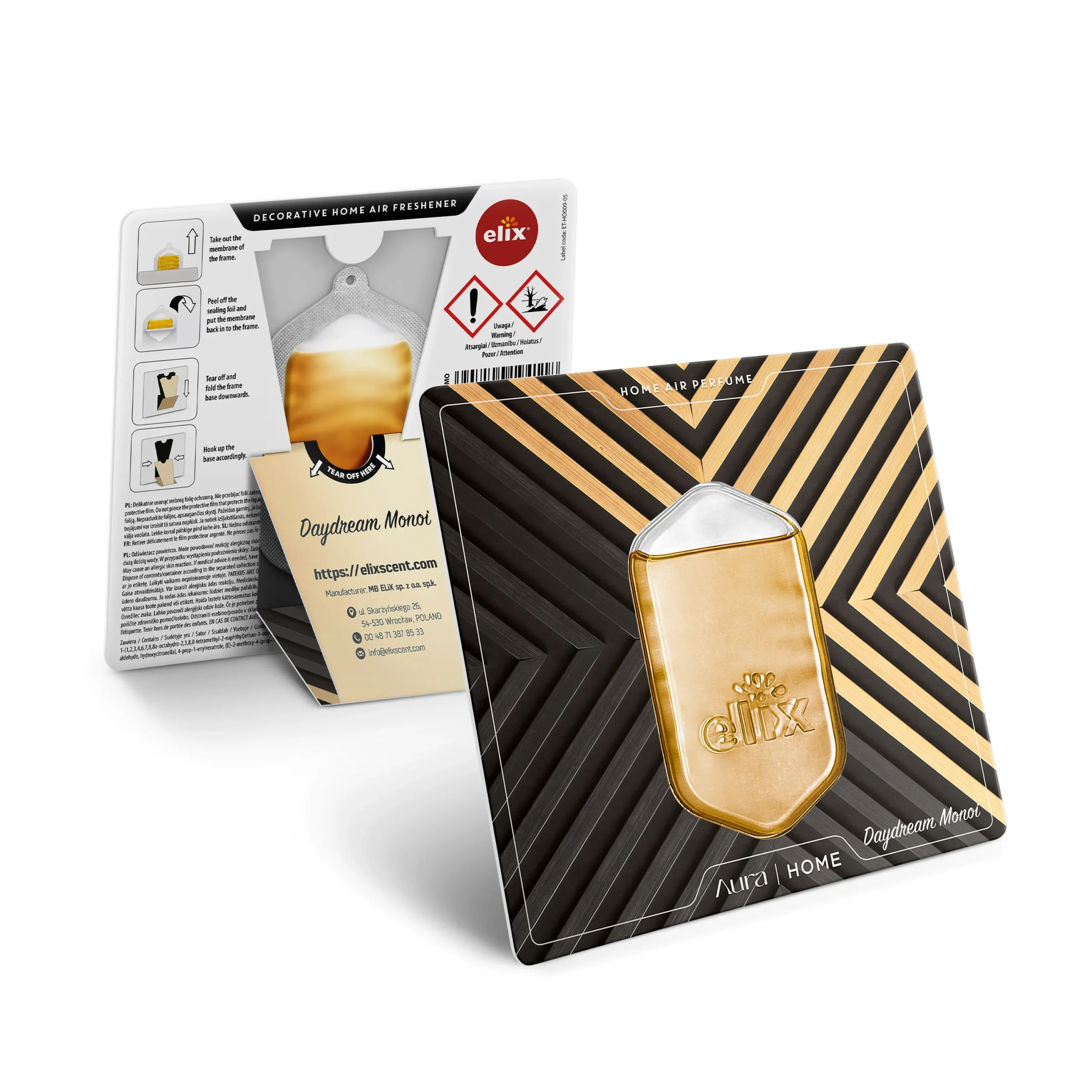 AURA Daydream Monoi is a decorative membrane home air freshener inspired by a sunlit island escape. Creamy notes of monoi, tiaré petals and soft coconut create a warm, silky atmosphere that feels relaxed and gently exotic, without overpowering the room. The sealed membrane delivers a steady fragrance for up to 60 days, with no leaks, aerosols or electricity – a stylish, compact detail that adds both beautiful scent and subtle décor to any space.