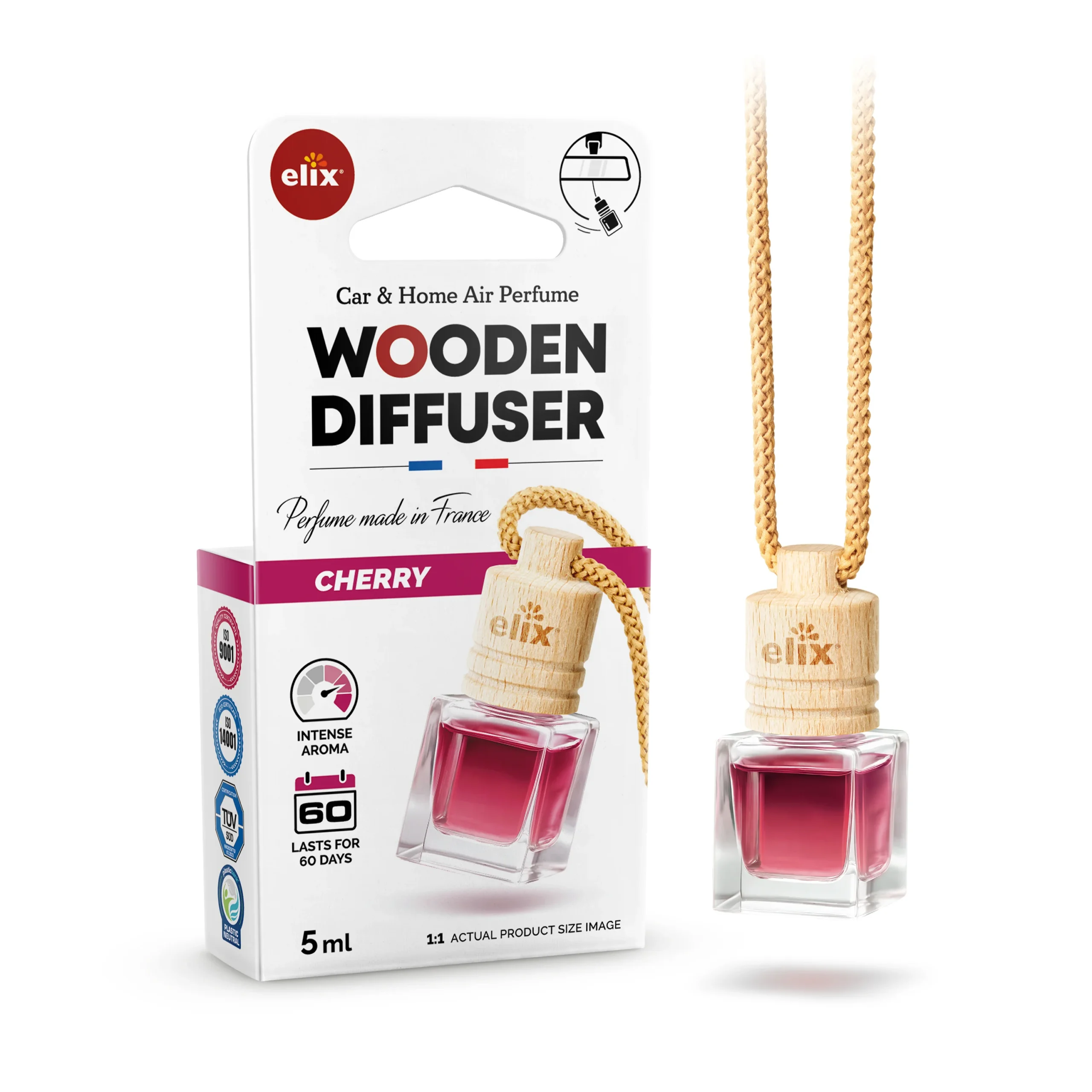 Looking for a cherry wooden diffuser that stays pleasant in the cabin—rather than a burst of sweetness that fades fast? Wooden Diffuser Cherry is a cherry car air freshener designed for even fragrance release: the scent diffuses gradually through the wooden diffuser cap, giving you a consistent, long-lasting car fragrance for everyday driving.